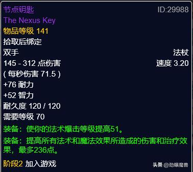 节点钥匙,风暴要塞王子掉落。高智力、高暴击属性。