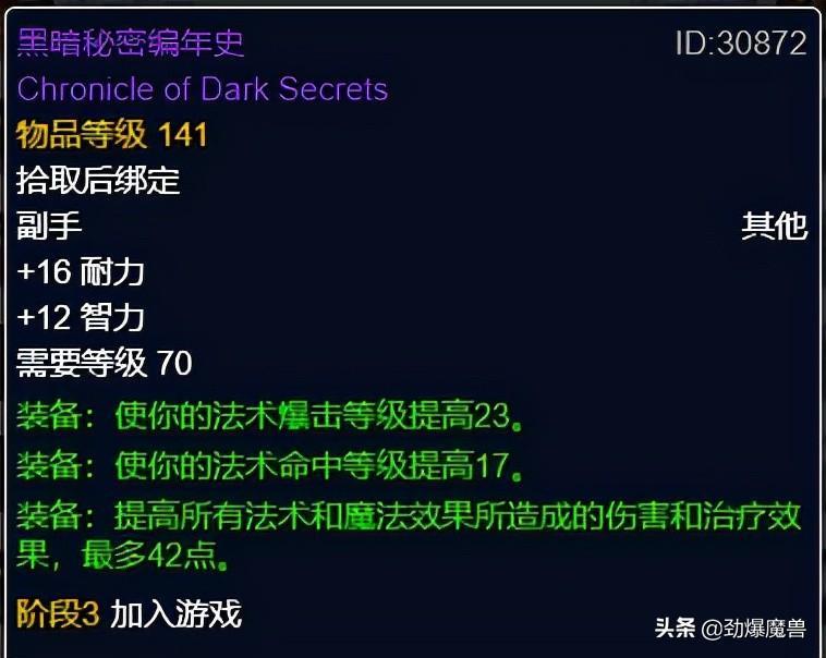 黑暗秘密编年史,雷基冬寒掉落。高暴击、法伤副手。