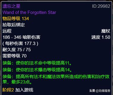 遗忘之星,风暴要塞大星术师掉落。命中、暴击魔杖。