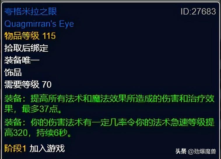 夸格米拉之眼,英雄模式奴隶围栏掉落。触发型急速饰品。