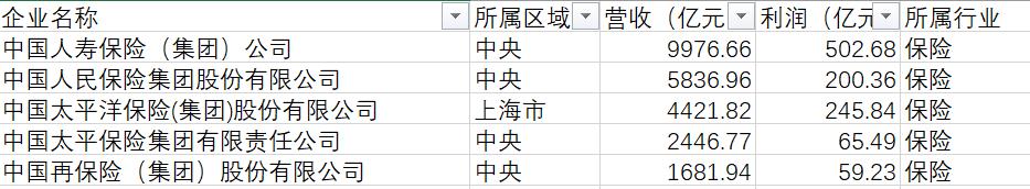 《国有企业200强》的保险五巨头。