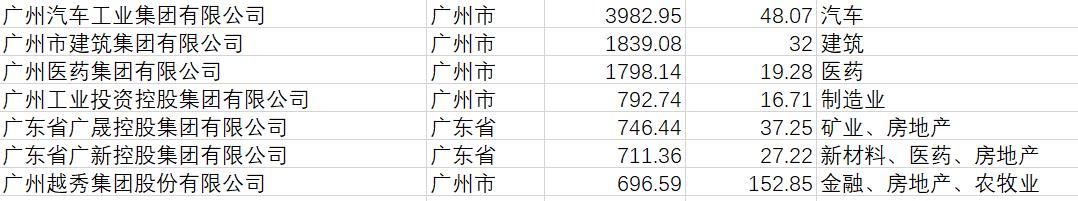 《地方国企100强》的广东省属企业和广州市属企业。
