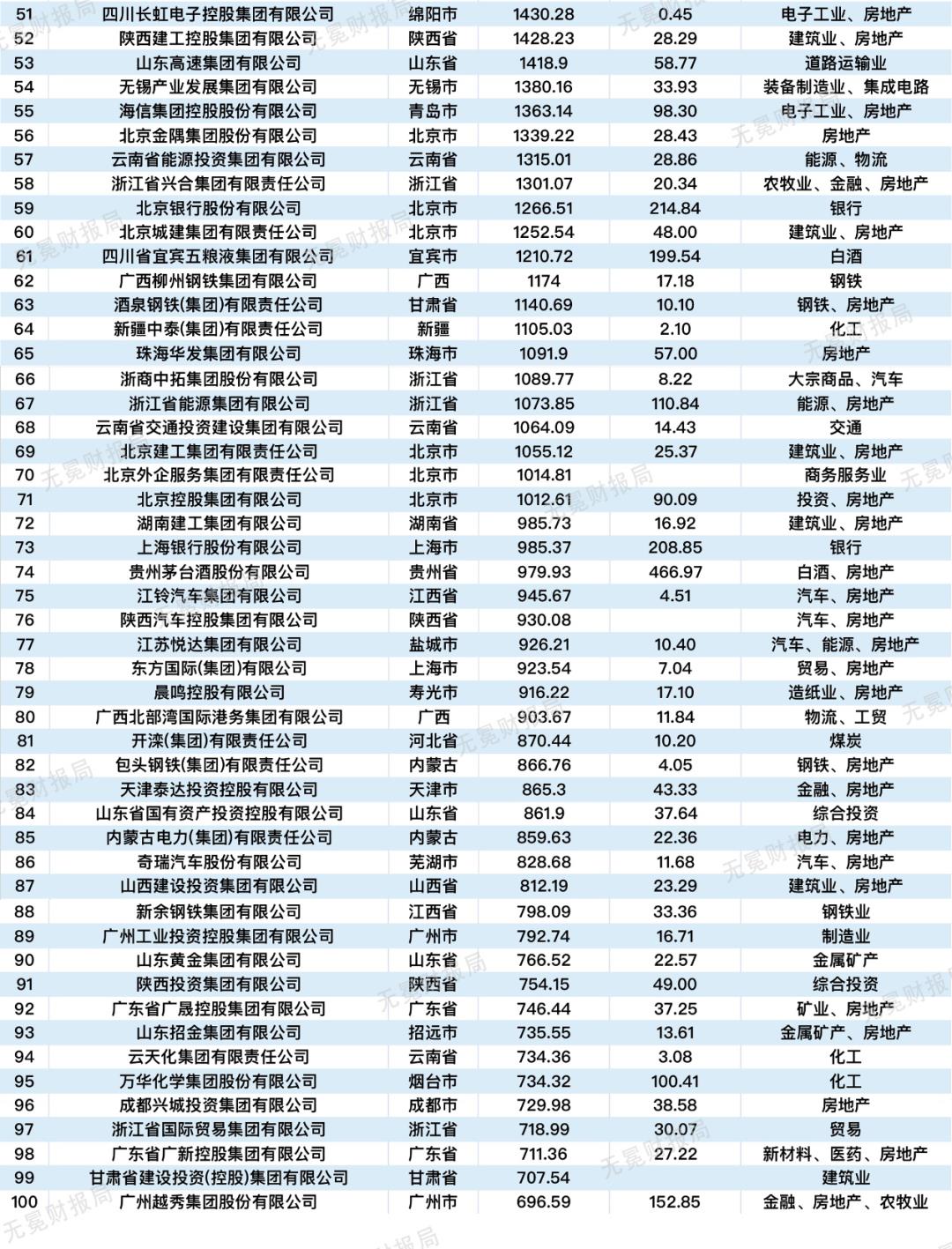 再仔细看看《地方国企100强》,我们会发现各省(直辖市、自治区)之间的国企差异很大,有的省份群英荟萃,有的省份全军覆没。