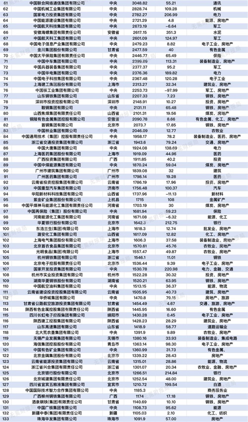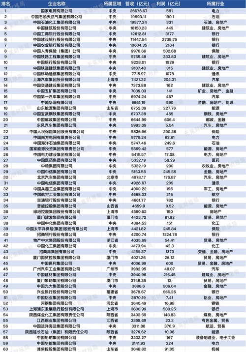 这两个榜单有什么区别呢?中国的国有企业按层次来说可以分为两类,一类是由国务院国资委或财政部直接监管的企业,俗称“央企”,一类是由省(直辖市、自治区)、市(州)、县(县级市)直接监管的企业,俗称“地方国企”。第一个榜单不包含央企,第二个榜单含有央企。