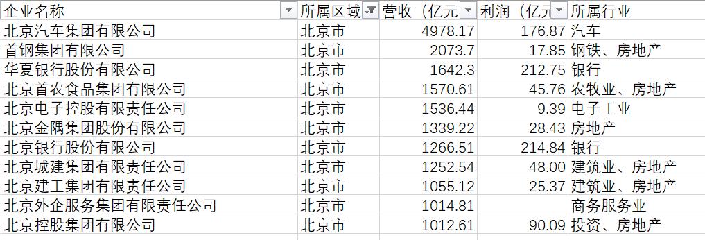 《地方国企100强》中的北京国企。