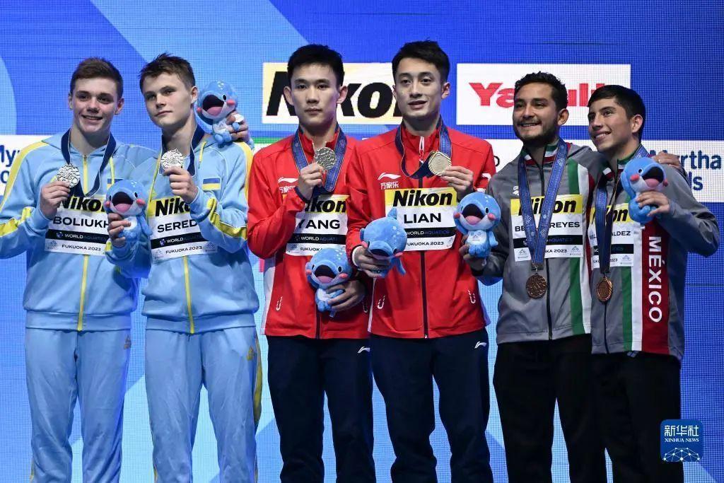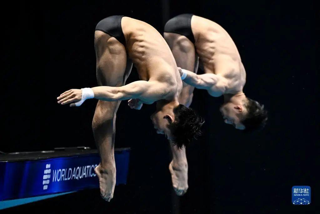 当日,在日本福冈举行的2023年世界游泳锦标赛跳水男子双人10米台决赛中,中国选手练俊杰/杨昊以477.75分的成绩夺得冠军。