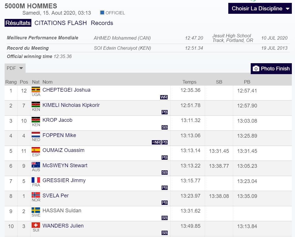此前的世界纪录是由埃塞俄比亚长跑名将凯内尼萨·贝克勒,在2004年5月31日,荷兰亨厄洛,跑出的12分37秒35。