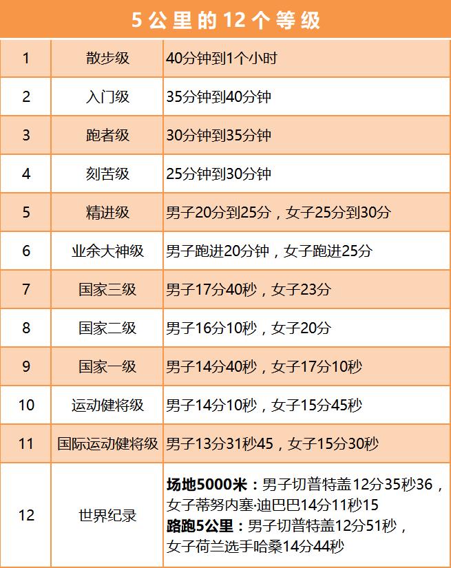 互动:那么问题来了,5公里你能跑多快?5公里12个级别你是哪一级?