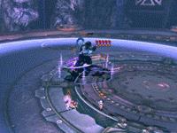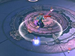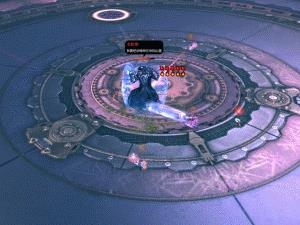 一定时间后,Boss会跳到中间并且场上会出现3个帮助Boss恢复生命的小法器,我们要尽快的把3个小法器打掉.