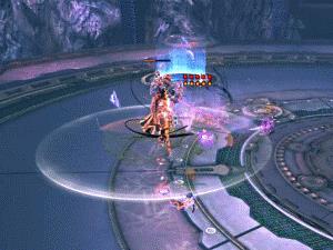 看到Boss跳中之后,1、2号到较远处的紫色区域分电后分别去打附近的小法器(1号踩红线输出,准备最后被抓),2和3则在红圈内部输出。