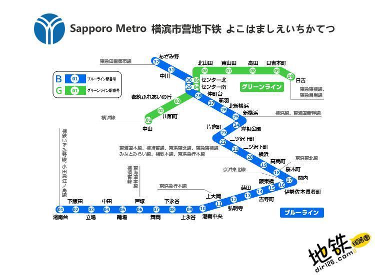 而横滨地铁运营的这两条线路命名也很简洁蓝线、绿线。