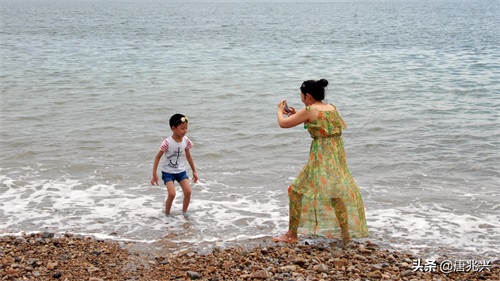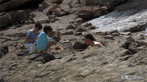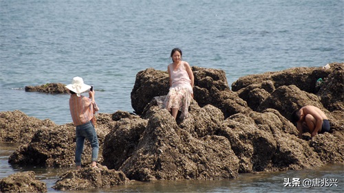 大海退潮时,游人们可以在礁石上休息、玩耍。