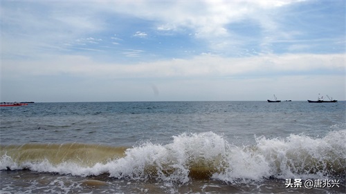 海浪拍打在海滩上。