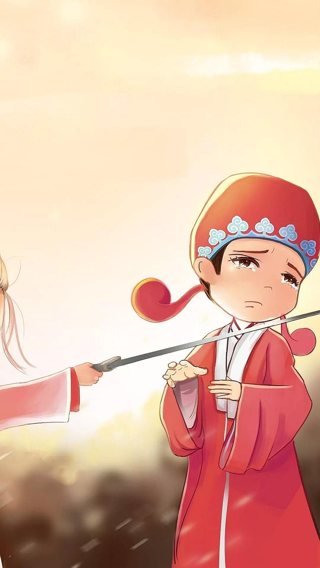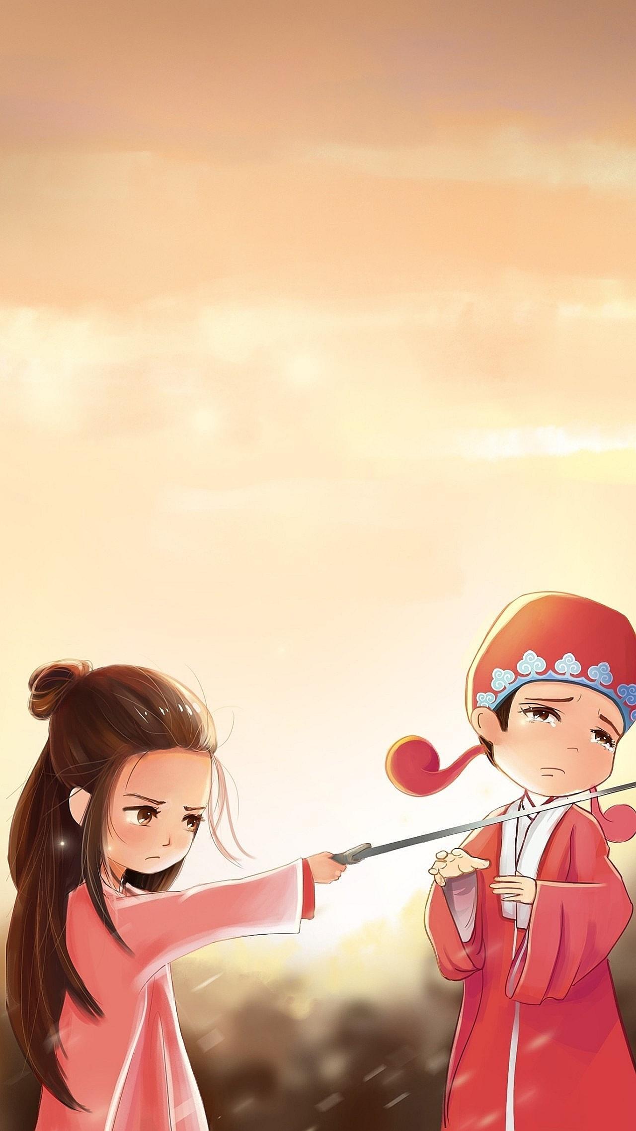 致敬《大话西游》,Q版紫霞至尊宝插画,不一样的情侣头像和壁纸