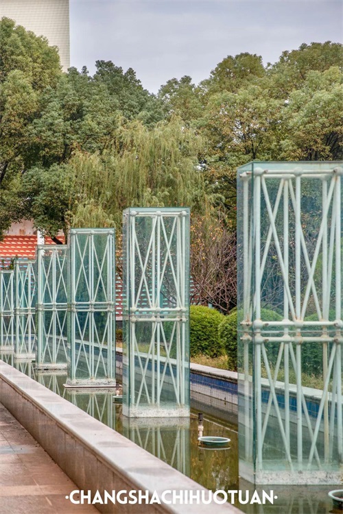在民政,艺术随处可见又不高调,行走于民政校园也总能感受到这群人想要打造的艺术调性。人造湖中的国风小亭、道路前的玻璃装置,均是一段珍贵记忆。