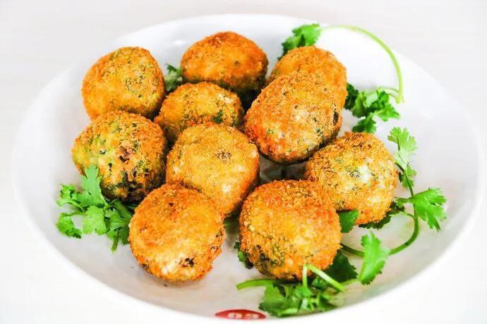 3.炸肉丸时油温略高一些,只要炸至定型即可,不必炸熟透;