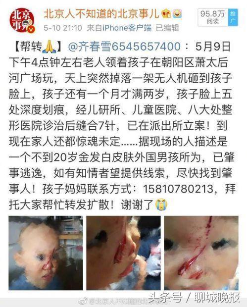 事件回顾:外籍男孩操作无人机砸伤幼童,脸部伤口共缝7针