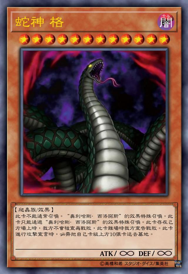 玩家自制的这张卡,完美还原了动漫的剧情,每次被破坏都会更强地复活,在现在的环境还是有很多方法破坏的,海龟、除外、甚至无效它的效果都可以。
