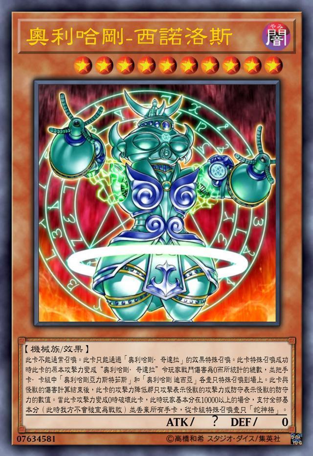 这是第二张被实体化的奥利哈刚卡,这效果和动漫更是一模一样,这毕竟都是玩家自制的,下面我们来看一看真正的ocg的效果: