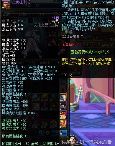 三英雄。这装备是所有黄字称号最高的一个。提升明显。带宝珠6000左右。不带宝珠3000左右。也是可以入手一个的
