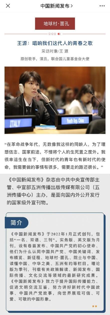 此次登上九年级语文试卷的文章《爱国的少年心,总是相通的》是王源于2021年4月刊登在《人民日报》的一篇文章,这篇文章同年也登上了《环球人物》。