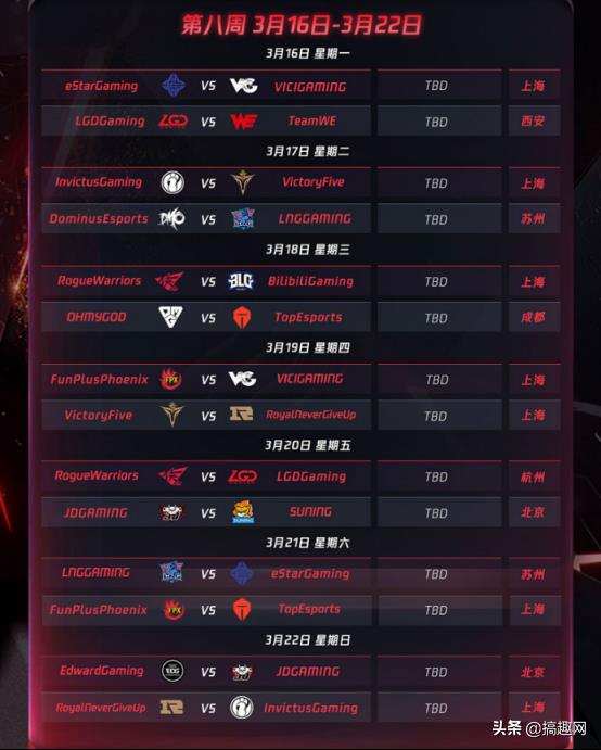 春季赛的赛程安排如图所示。值得注意的是,今年“电竞春晚”的时间在3月22日,到时请锁定收看。不知道大家对春季赛的赛程安排有什么想说的吗?欢迎评论区留言讨论。