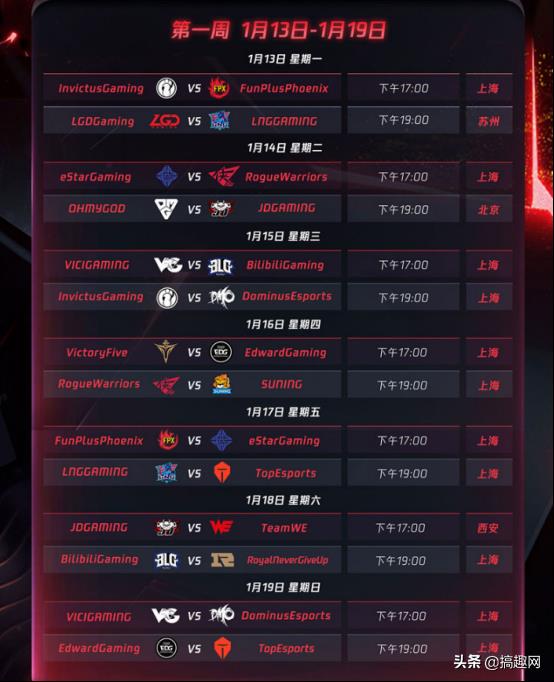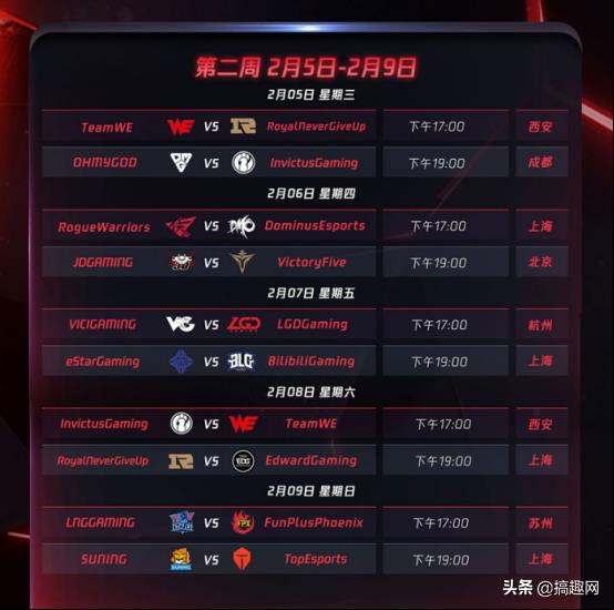 LOL:LPL春季赛赛程表公布,开局王炸和电竞春晚的时间请做好笔记