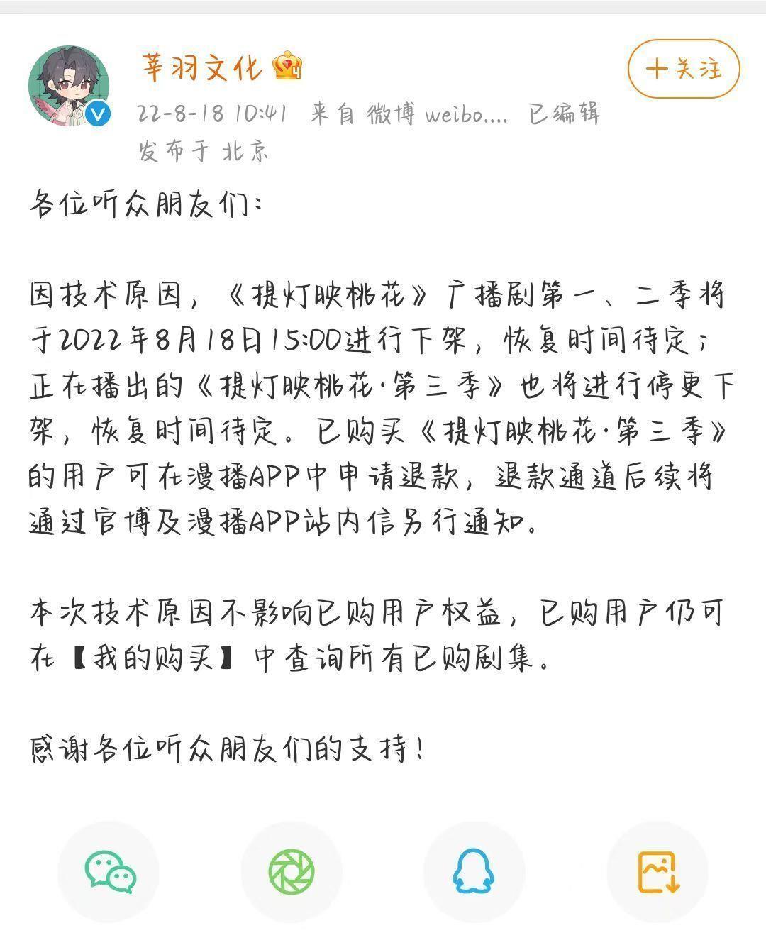 据悉,已经下架的广播剧包括《针锋对决》1~2季,《提灯映桃花》1~3季,《坦白从严》,《我喜欢你男朋友很久了》,《少汪几句》1~2季。