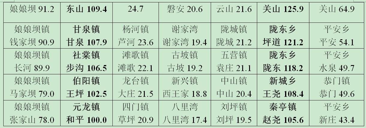 二、部分乡(村)镇降水量 (单位:毫米)