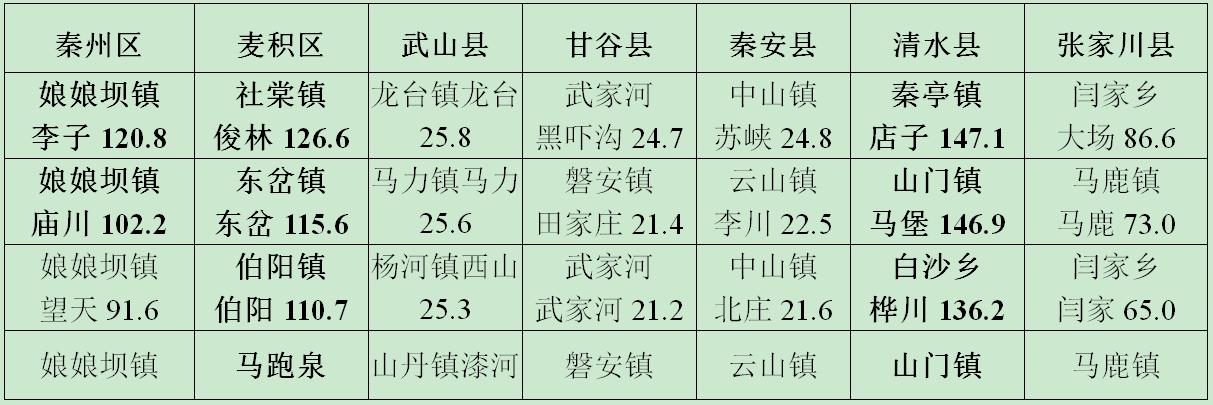 天水市出现大范围降水 东部部分乡镇大暴雨