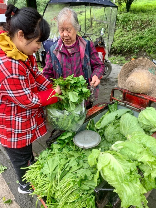 大半个月了,第一次出门去玉堂镇赶场,路遇一叼着叶子烟杆的买菜太婆,一个小小的三轮车,装着一口袋冬寒菜。突然想起前几天看汪曾祺的《人间至味》里的内容,资深吃货汪老先生用非常欣喜的笔触介绍了冬苋菜,说到武昌吃饭,餐餐都有一碗绿色的蔬菜汤,一问才知是冬苋菜,再联系到小时候自己汉代乐府古诗十九首《十五从军征》中的句子“中庭生旅谷, 井上生旅葵。舂谷持作饭, 采葵持作羹。羹饭一时熟, 不知贻阿谁!”,此处的葵就当是冬苋菜,直到这个时候汪曾祺才把名和实物对上号。当然我不知道汪曾祺到过都江堰没有,要是他吃过都江堰的用米汤煮的冬苋菜肯定更会赞不绝口。
