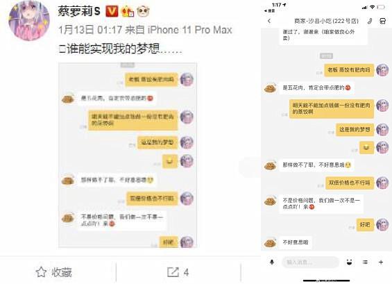 而近日,蔡萝莉的一条动态证实了她确实是上流社会人士,恰逢最近生日刚过去,可能是因为比较爱吃蒸饺所以蔡萝莉想点一份蒸饺外卖。只是也不知道是不是怕发胖,所以她直接给店家商量说蒸饺不要加肥肉,为此甚至不惜用钱压人出双倍价钱,只可惜店家依旧给拒绝了。