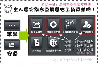 欢迎点击您喜欢的内容【朋友圈】, 法制文萃报微信平台可以使您了解更多更专业的新闻热点资讯、文化艺术信息、历史档案钩沉、健康保健指南,并提供重要的法律服务意见。还能够与本报进行互动、分享、交流!欢迎你通过以下三种方式关注我们: