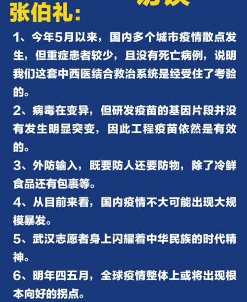张伯礼:明年四五月疫情或现拐点 张伯礼说了什么全文曝光