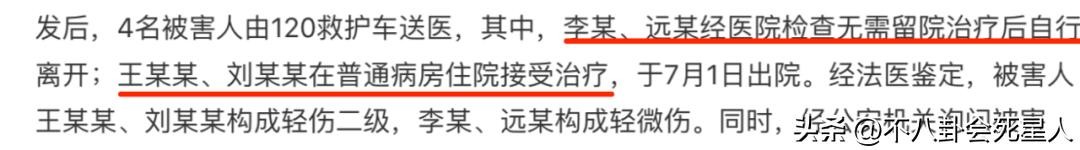 网友们密切关注的4个女孩的情况,通报中也予以说明了。被骚扰的王某某及同伴刘某某构成二级轻伤,另外两位女孩李某和远某构成轻微伤,当天被送往医院时,王某某和刘某某住进了普通病房。而李某和远某经过医疗处理后,自行离开了医院。
