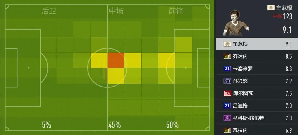 新版本大家觉得前场传球容易失误,这是版本共性,ICON车范根也不能例外。不过车范根的实际传球准度比面板数值要好,他回撤后的分球、一脚出球和斜向分边调度等等,都有不错的成功率。当然他很难像德布劳内这样犀利直塞及助攻,但总体上说作为全能中锋是够用的。