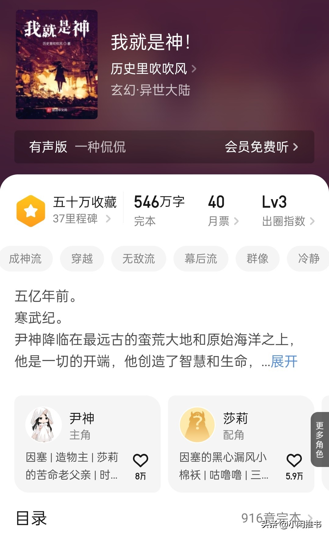 小说探讨了造物主的概念,以及时间和传说如何影响一个神的形象和故事,引人深思。小说读者众多,拥有50W的收藏,书荒的书友可以看看这本书,这本书是一颗优质粮草!