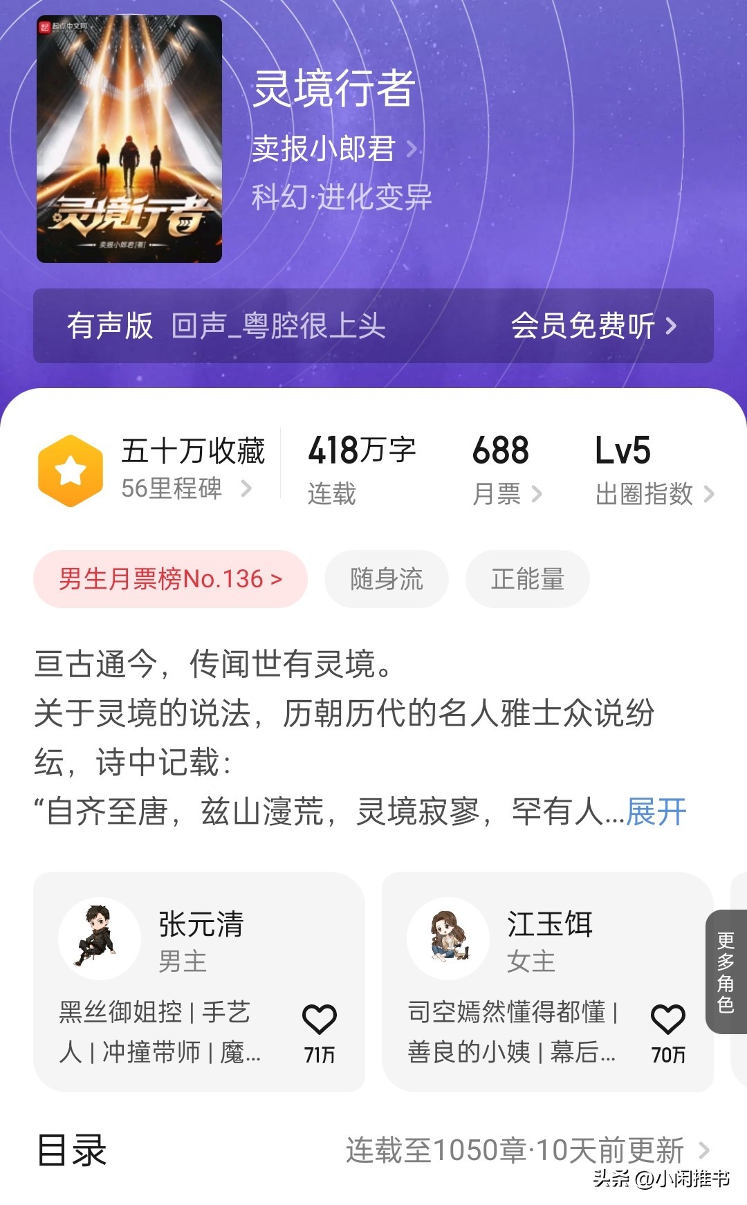 无女主的老作者了。说到陈词懒调,一般都会记得《回到过去变成猫》,但我最早是看《星级猎人》入坑的,后来的《原始战记》也看过一段时间,但是上一本《未来天王》就没追。陈词的文笔可太棒了,说故事、描写人物的水平也很高。