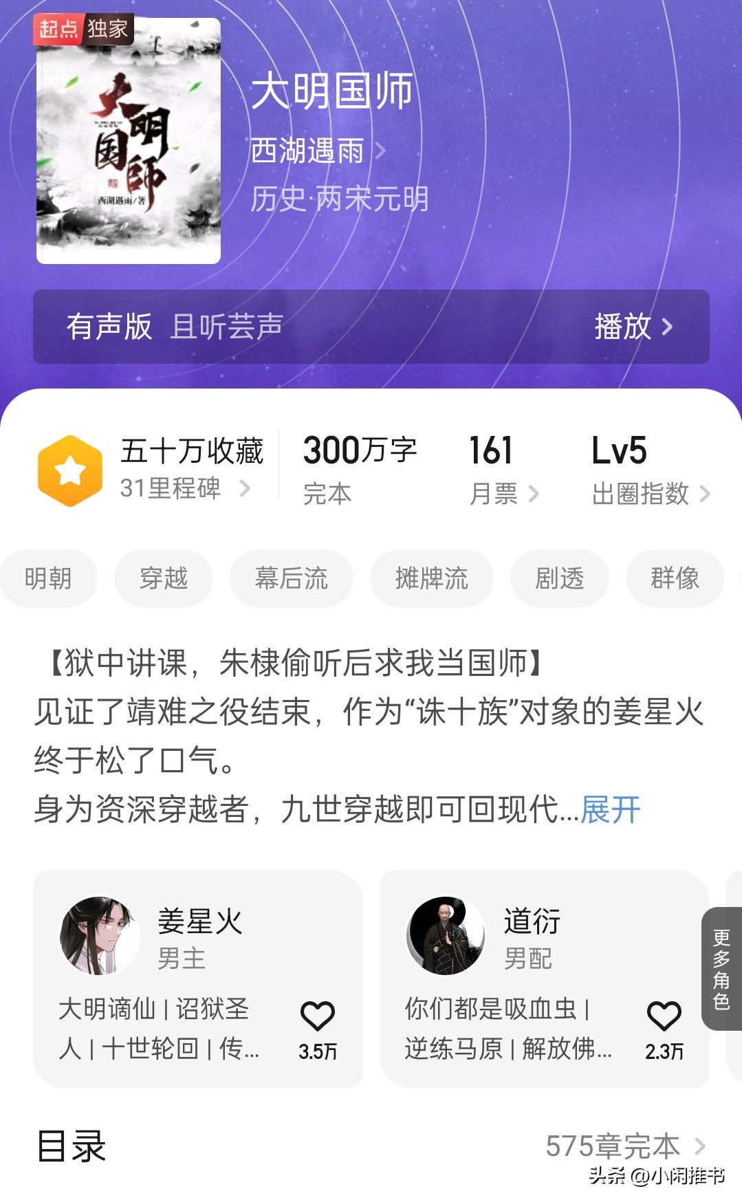 是一部深刻而引人入胜的历史穿越小说。作者西湖遇雨凭借其深厚的历史研究功底,巧妙地通过主角姜星火,将现代科学、经济、政治等多元理论与大明王朝的历史背景相结合。在这部小说中,姜星火的角色塑造尤为出色,他不仅是现代思想的传播者,更是历史的参与者与塑造者。通过与大明王朝各种势力的交互,姜星火逐渐展现出其卓越的智慧和独特的魅力。
