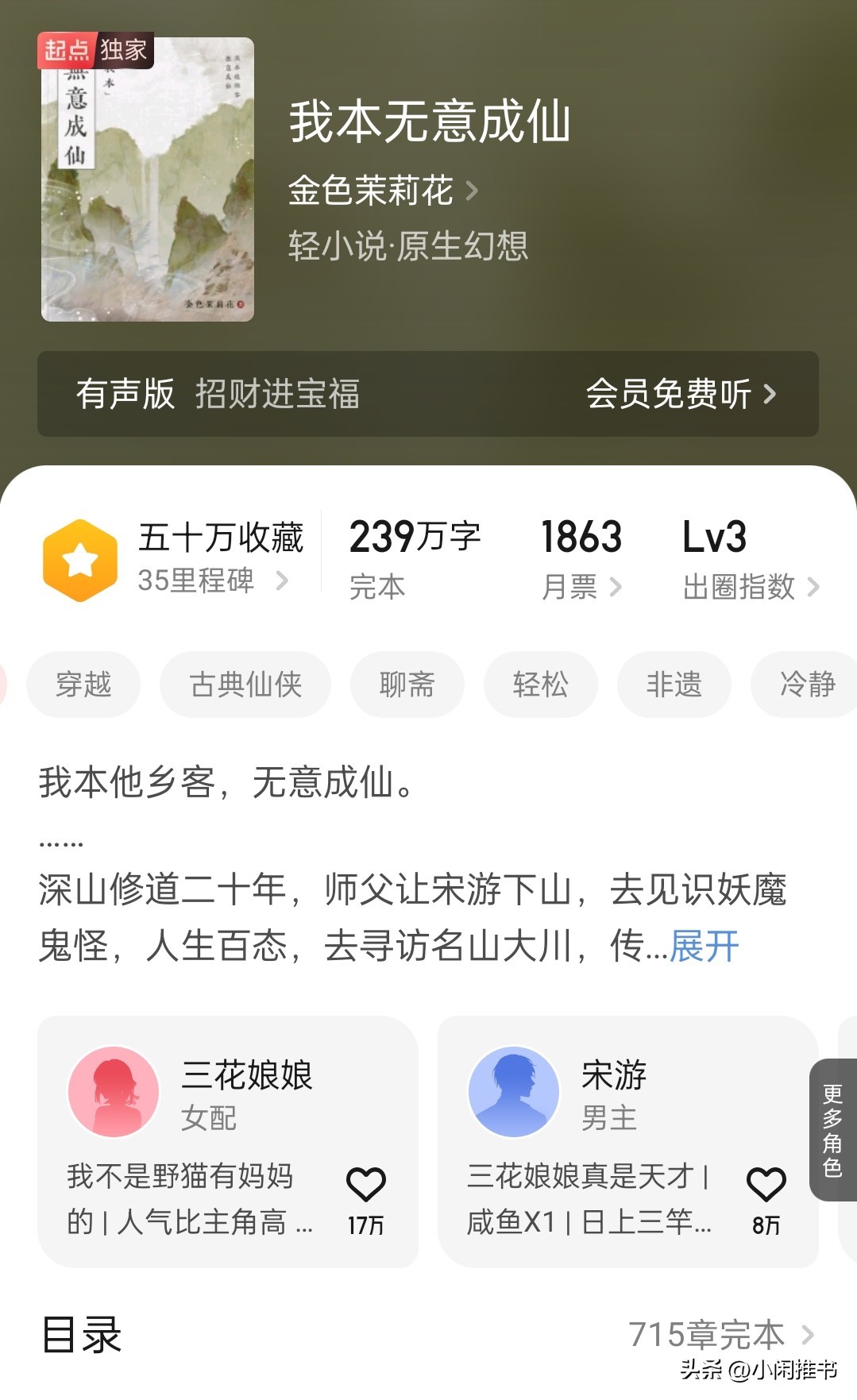 开篇给我的仙气滤镜已经开始碎掉了,所谓的仙味其实也只是大量摘抄道藏,然后写点让人看不懂的注解,觉得不明觉厉,哦,一股玄之又玄的感觉立刻让人觉得很有古典仙侠的味道了。 最后总结一下,其实就是康熙微服私访记/水户黄门——仙侠版。