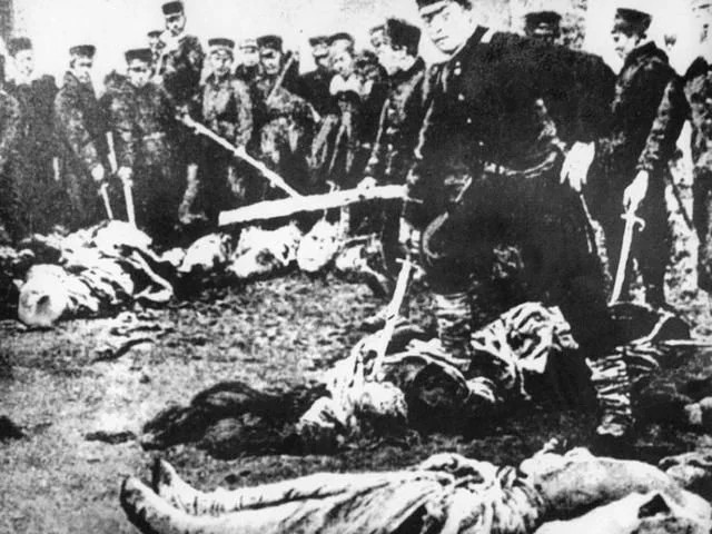 1894年11月21日,日本占领了辽东半岛的旅顺,对城内进行了四天三夜的大屠杀。只有埋尸的36人幸免于难,死难者2万多人。按人口比例算,旅顺屠杀比南京大屠杀更惨烈。