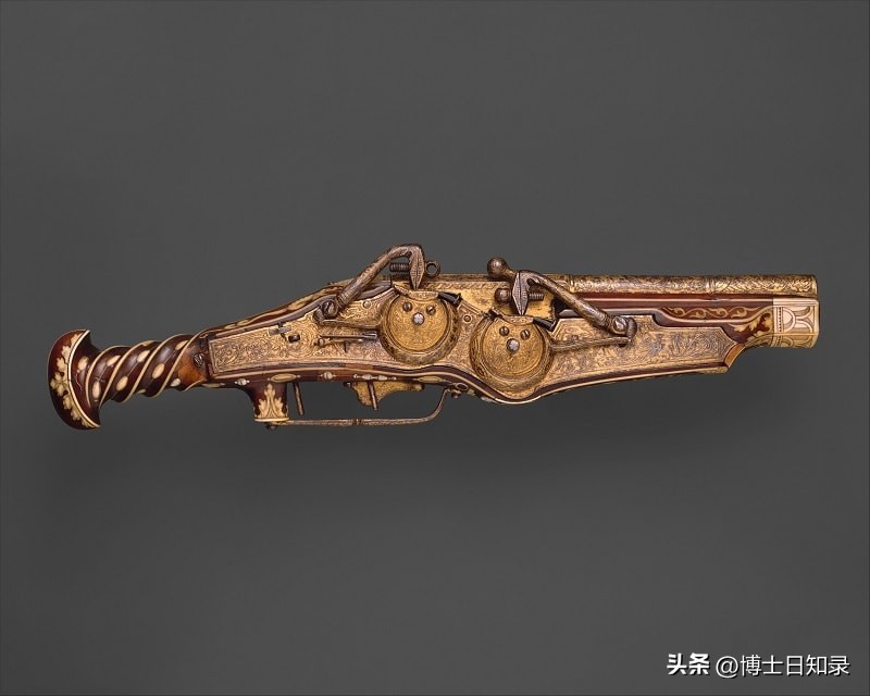 为国王查理五世制造的双管轮锁手枪(如上图所示)是现存最早的手枪之一,其历史可以追溯到 1540 年至 1545 年左右。它是由德国的彼得·派克(Peter Peck)创造,他也制作了高级手表。该枪将两个锁组合成一个发射机构,这意味着每个枪管都可以单独点燃。