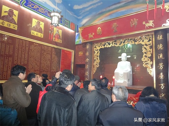 在第一排从右边往熙和殿数第十八间,其门口牌匾是:立德兴邦家族盛,崇宗敬祖裘孙贤。