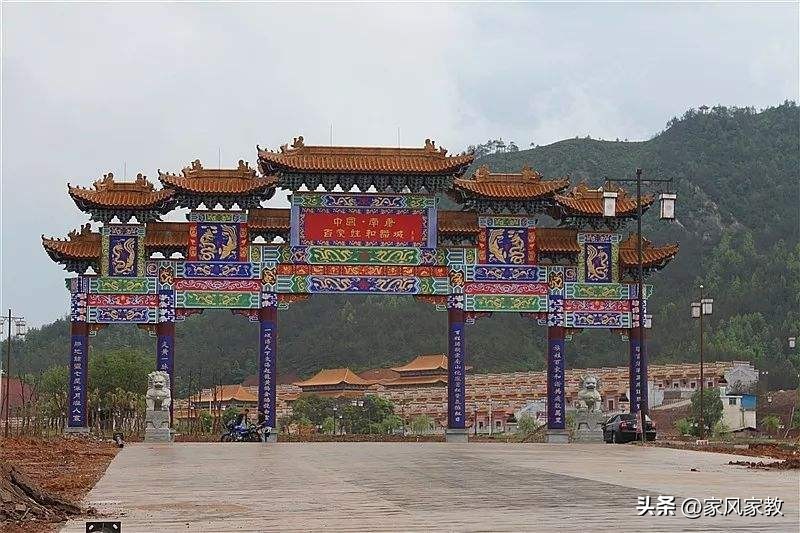 和谐城由仿明清古建风格的熙和殿、始祖殿、乾坤殿三大殿和108间百家姓祠堂组成。