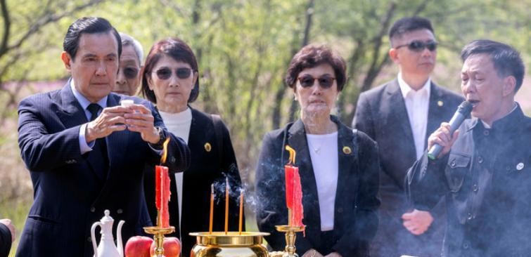 马英九站在祖父墓前,声音微颤,几度哽咽。73年了,他终于站在了这片土地上。