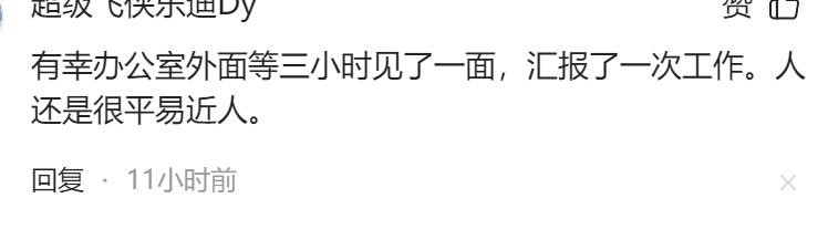 有网友感叹,可惜了,"有幸办公室外面等三小时见了一面,汇报了一次工作,还是很平易近人的。"