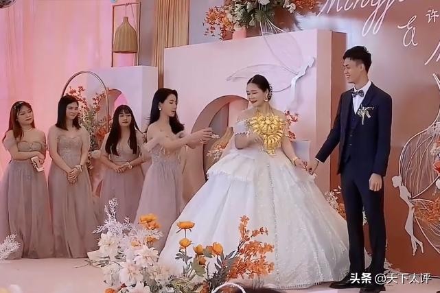 有网友就说了,这个新娘搞这么多黄金挂在脖子上,是不是在炫富,结果新娘知道这句话之后,说了一句话,让这些酸溜溜的“柠檬精”哑口无言