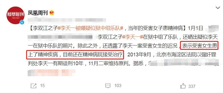 因此从目前来看,大家都有了自己的发展,但在大家纷纷感叹之余,其实还有一个人没有走出曾经的阴影,那就是被李天一伤害过的那个女生,之所以这么说是因为从官媒的采访中,我们能得知,那个女生现在患上了精神疾病,为此还住进了精神病院进行治疗。