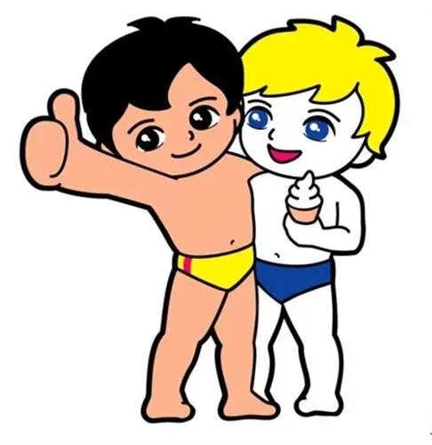 海尔兄弟一个是黄肤色,一个是白肤色。寓意中西合璧。如果穿西装你也会纳闷;穿中装你也会纳闷,干脆还是穿海滩装好了,比较统。
