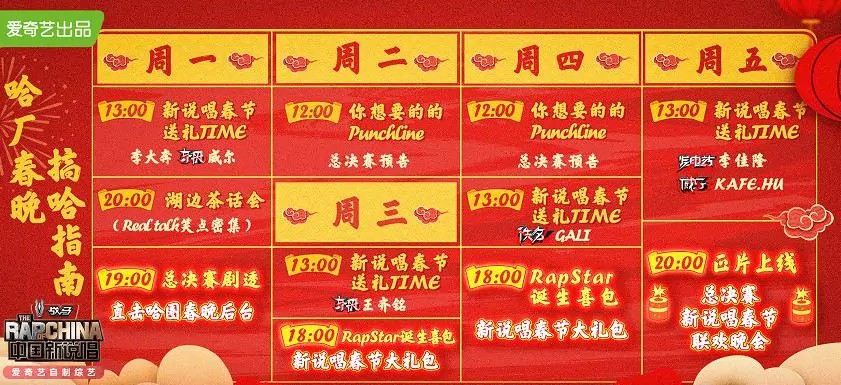 哈圈春晚将会持续一周,从总决赛前六天开始预热,先是举办了一场四强LIVE SHOW,并且在接下来的每一天都会有不同的小节目或新预告放出,显然节目组打算大肆宣传一周,然后在最后关头做一出好戏给大家看。